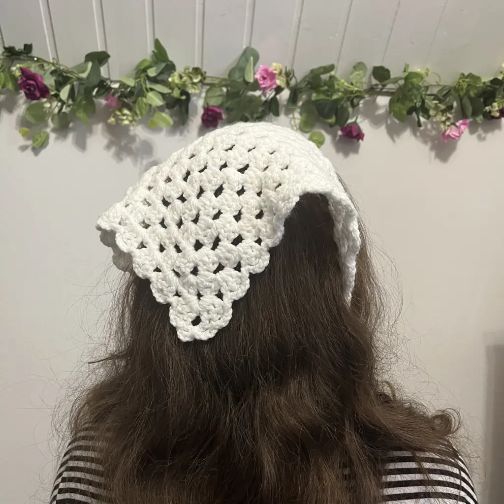 Gerade jetzt, wo Mützen langsam verschwinden, aber es morgens noch frisch ist, ist ein leichtes Häkelbandana die perfekte Übergangslösung und schützt den Kopf vor Sonnenstrahlen.