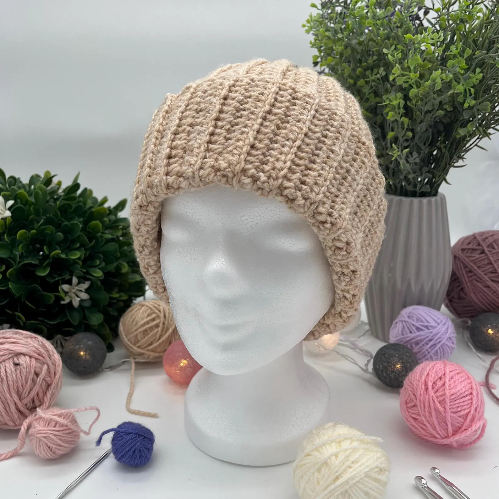 Handgehäkelte Beanie im Rippenmuster – warm & vielseitig