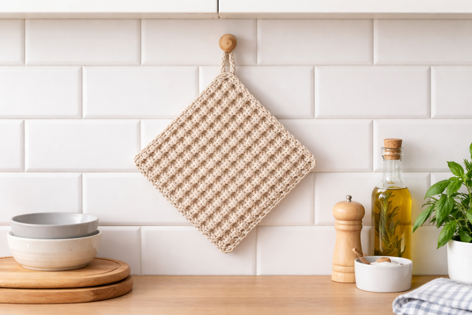 Topflappen im Waffelmuster häkeln: einfache Anleitung für Anfänger