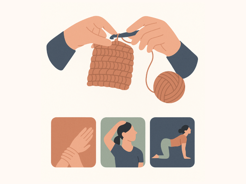 Diese Kombination mobilisiert und entspannt die Strukturen, die beim Häkeln besonders gefordert sind.